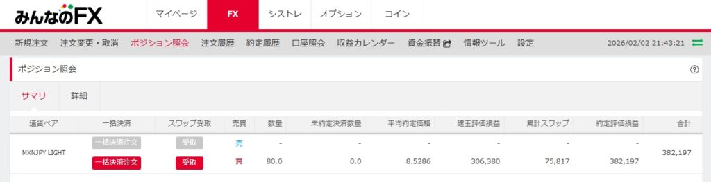本日は 2026年2月2日 時点 のスワップ運用実績をまとめます。