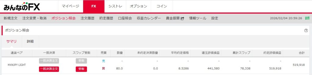 本日は 2026年2月4日 時点 のスワップ運用実績をまとめます。