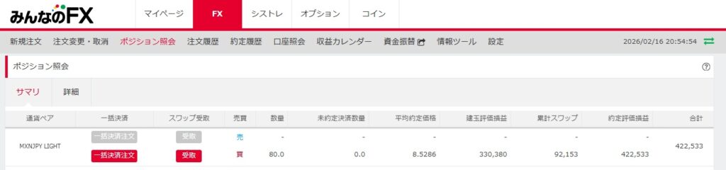 本日は 2026年2月16日 時点 のスワップ運用実績をまとめます。