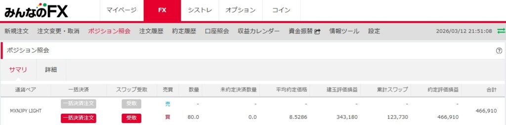 しかし、そのような局面でも毎日確実に入金されるスワップポイントが、心理的な余裕と実利の両面で大きな支えとなっています。