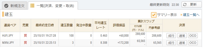 【2026年3月24日】FXスワップ運用実績|ハンガリーフォリント円・メキシコペソ円|運用144日目